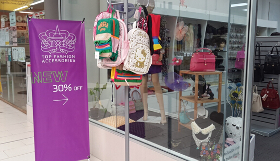 初见Macy,是在Top Fashion Accessories店门口。Macy身穿一件印花衫,配黑色长袜和打底裤,蹬及膝长筒靴,颈间一条复古风银色链坠。精干利落,穿着时尚,韵味十足。