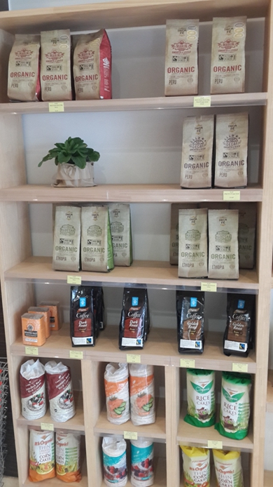 有机咖啡豆和米饼。近期店里会增制一台咖啡机,每天研磨店里的主打产品有机咖啡豆,冲泡香醇的咖啡,给顾客免费品尝。