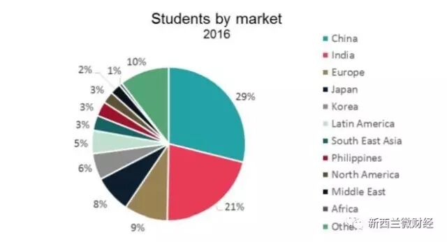 2016年新西兰国际招生人数达到131609人,中国留学生占比29%,近三成。