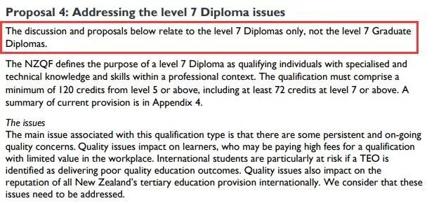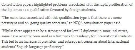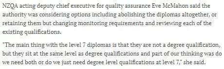文章强调,新西兰学历认证局NZQA(全称New Zealand Qualifications Authority)正在对只需要读一年、颇受留学生欢迎的level 7 diplomas的未来进行考虑。