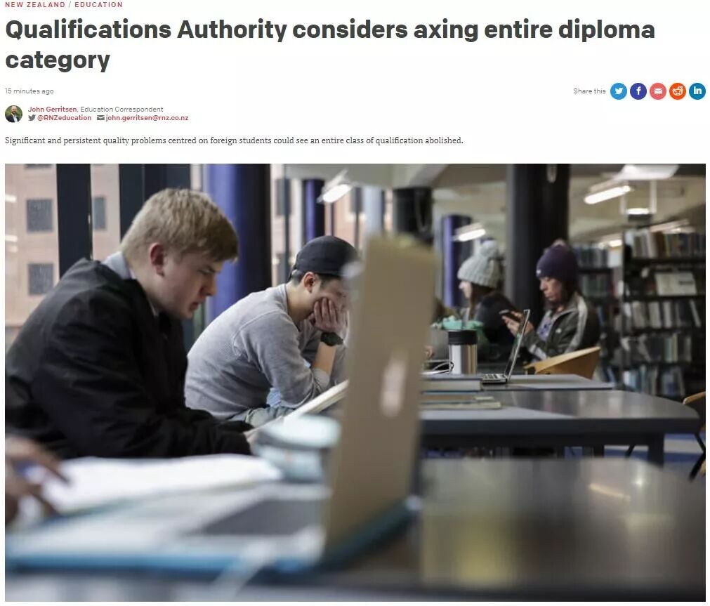 RNZ的这篇文章中称,近年来,这一级别的文凭出现了一些“显著而持续”的“质量问题”,并且“集中体现在外国留学生身上”。