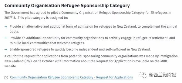 新西兰政府已同意试运行“社区组织难民担保目录”的新签证类型,计划2017/18年度在此目录下接受25名难民。