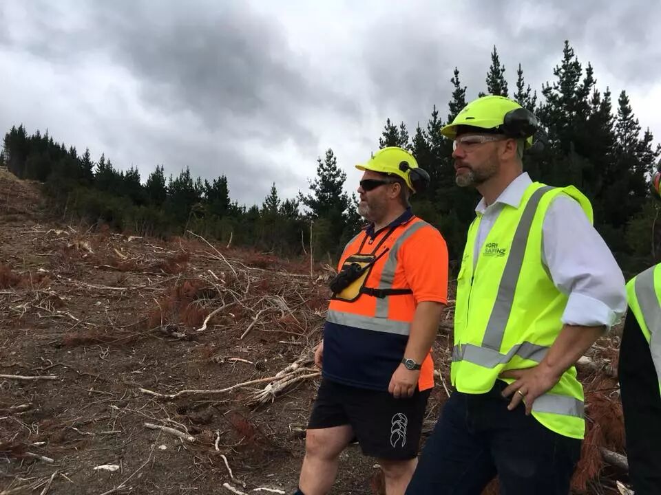 移民部长Iain Lees-Galloway听取了行业的汇报,指示林业部门加快机械化改造,促进安全生产,切实提升员工收入水平,缓解当前突出矛盾(左二)。